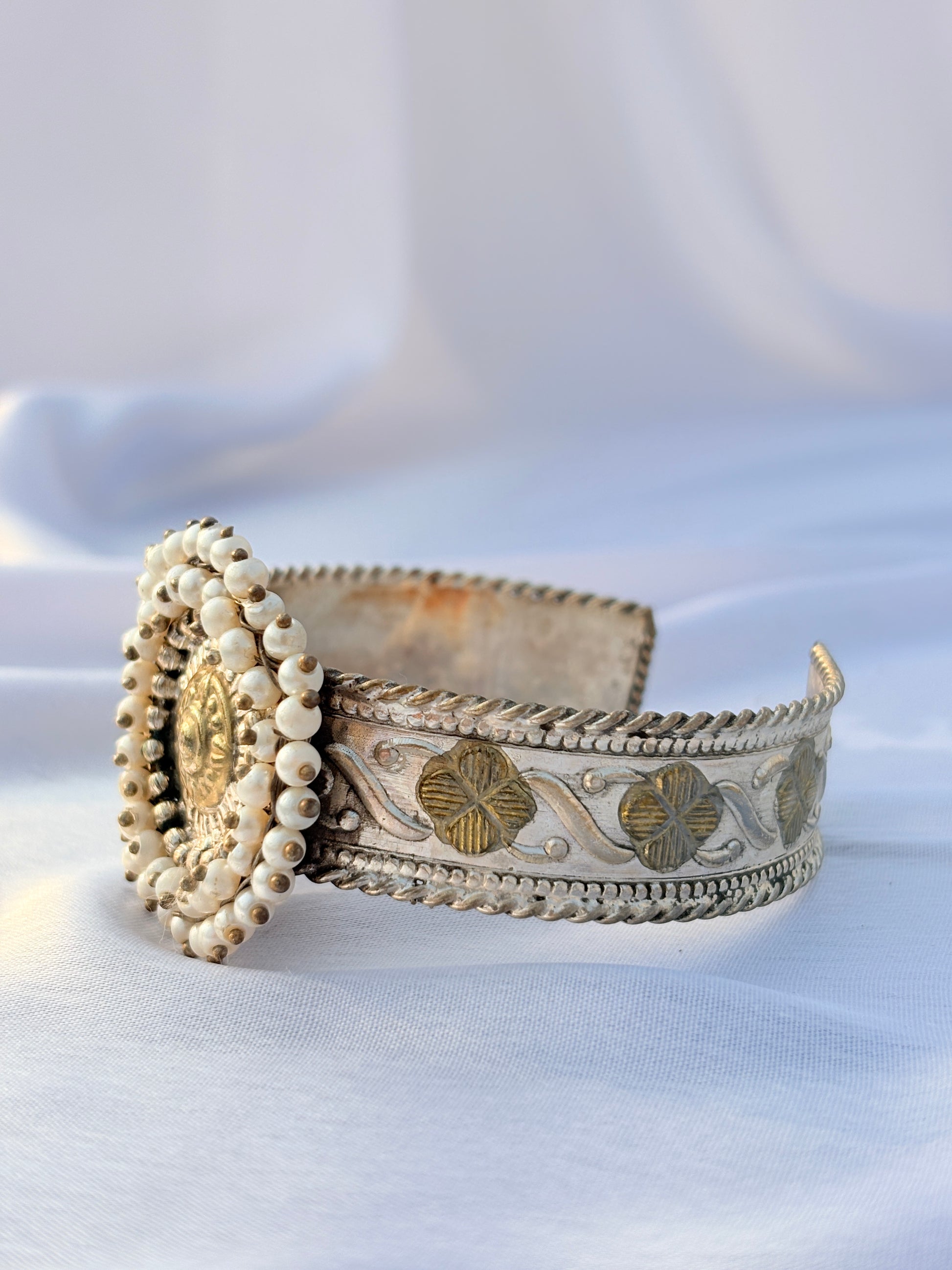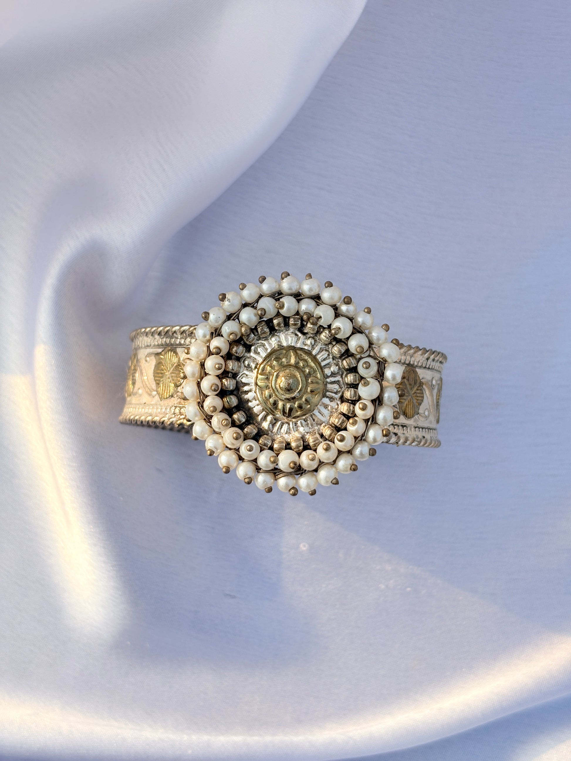 A bold yet minimalist kada inspired by contemporary nail design, finished in a high-shine gold tone. Its smooth curves and sculptural silhouette make it a modern statement piece. Perfect for everyday wear or stacking, this kada adds effortless edge with refined elegance.