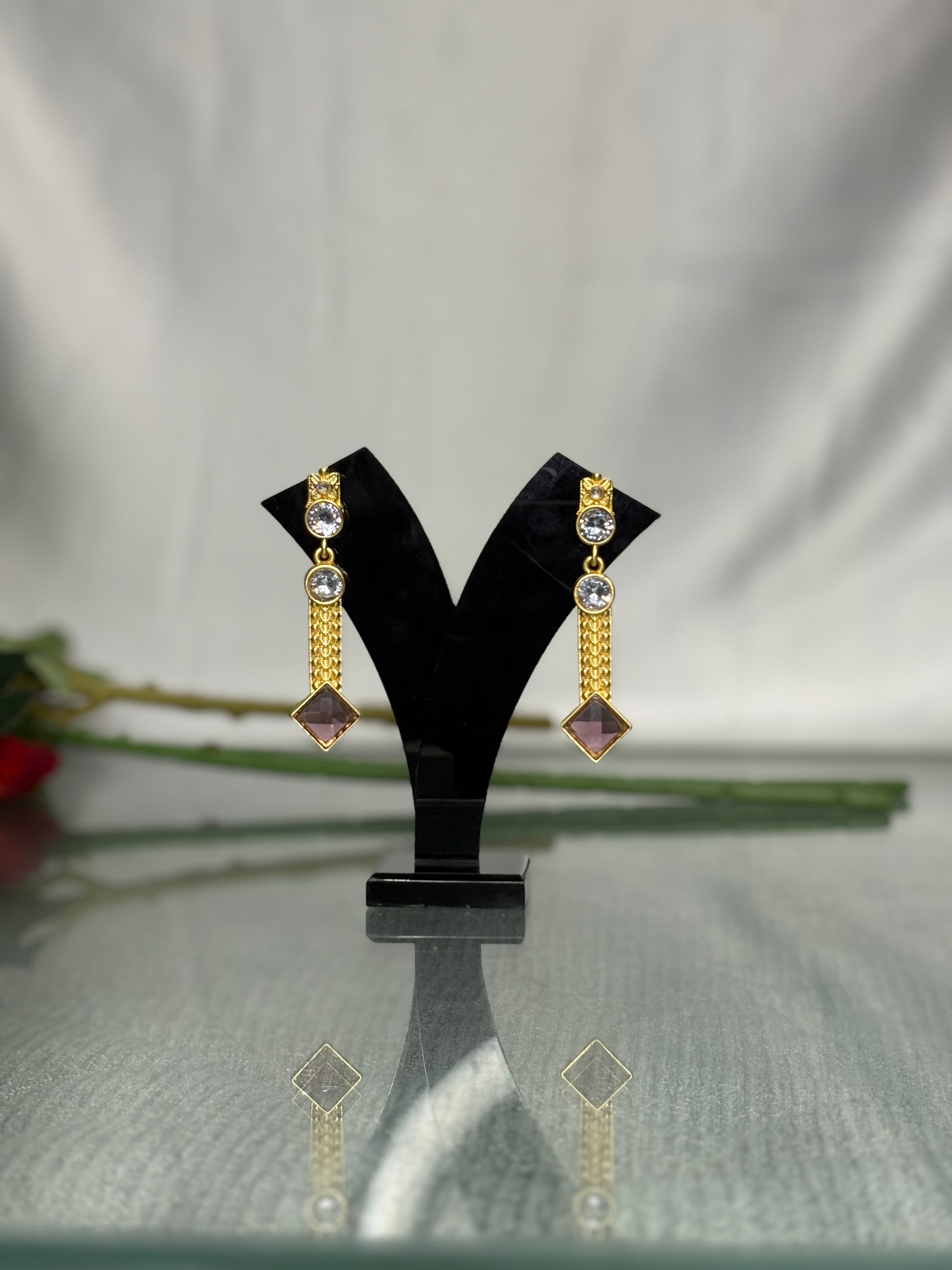 The elongated silhouette enhances the neckline beautifully, while the faceted purple stone adds a bold yet graceful contrast. Lightweight and fluid in movement, these earrings are thoughtfully crafted for comfort without compromising on statement appeal.